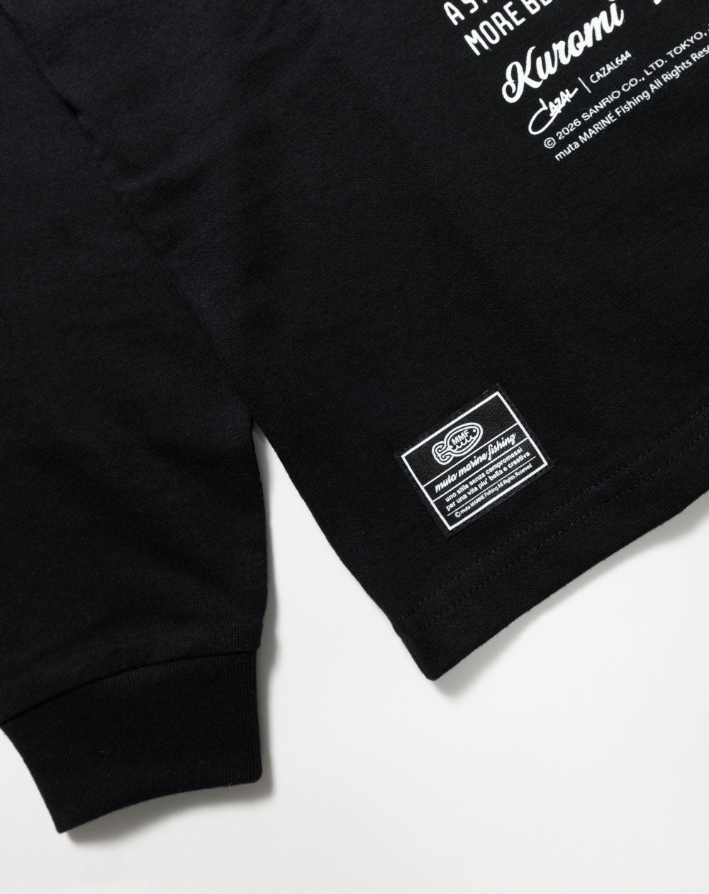 muta MARINE Fishing の世界観にサンリオキャラクター「Kuromi」を落とし込んだ目を引くデザインのTシャツ。