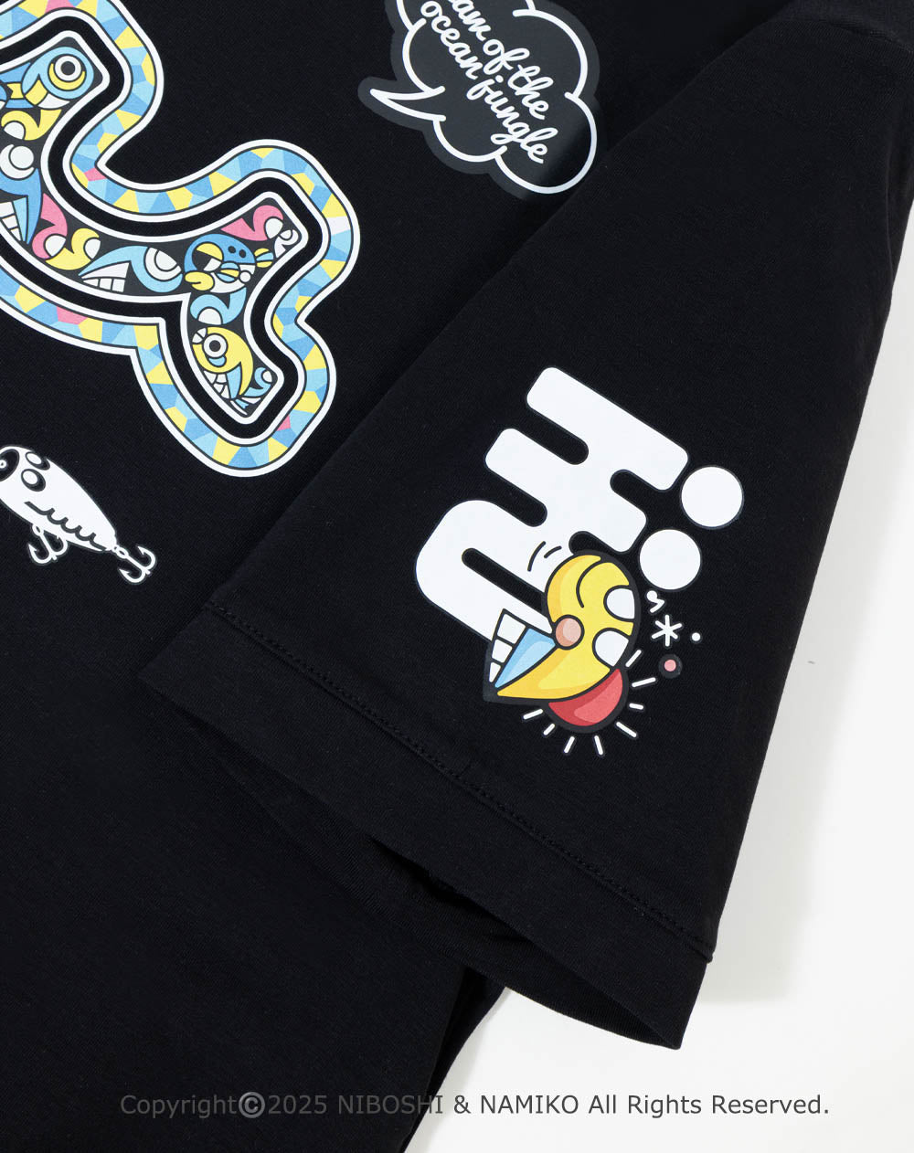 無数の「にぼし」で描かれた緻密で色鮮やかなアート作品を落とし込んだコラボTシャツ。