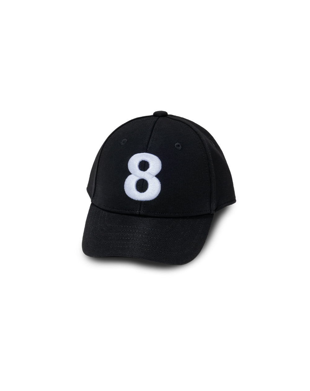 フロントに立体感のある刺繍で大きくデザインした8が印象的なキッズ用キャップ。